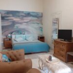 The large accommodation is stylishly decorated with antique and shabby-chic furniture in all shades of blue, giving the studio a calm and elegant atmosphere.